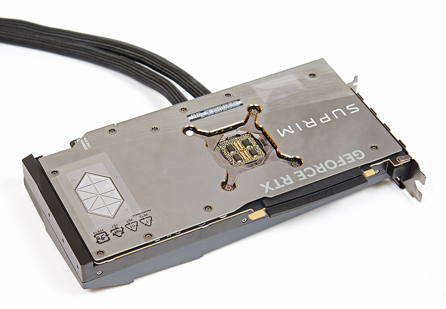 Частота графічного процесора складає 2235 МГц, але він може прискорюватися до 2625 МГц, як і в Suprim з повітряним охолодженням, тільки тут ліміт потужності підняли до 530 Вт замість 520 Вт у звичайній моделі. Пам'ять працює на своїй стандартній частоті та має пропускну спроможність на рівні 21 Гбіт/с.
