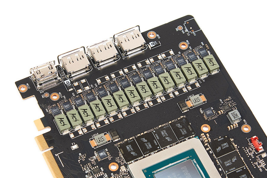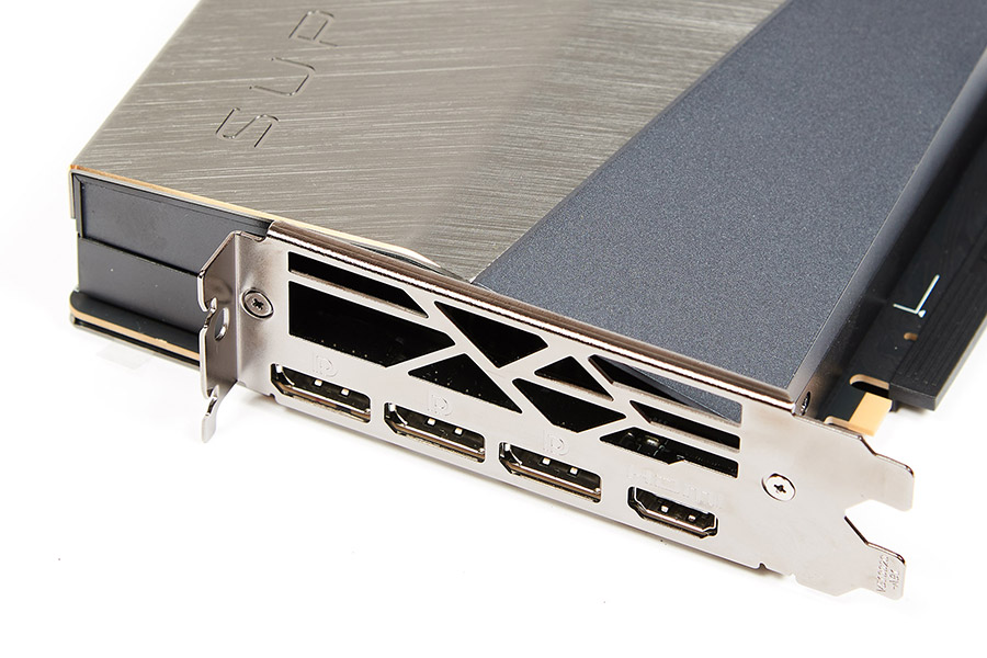 На зовнішній планці присутні три роз’єми DisplayPort 1.4a та HDMI 2.1a, а над ними є отвори для виходу гарячого повітря від системи охолодження.