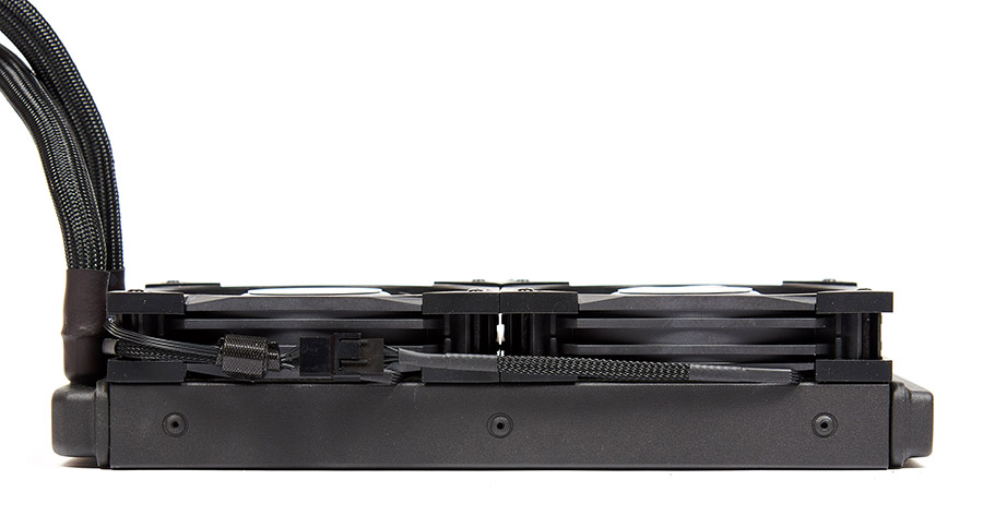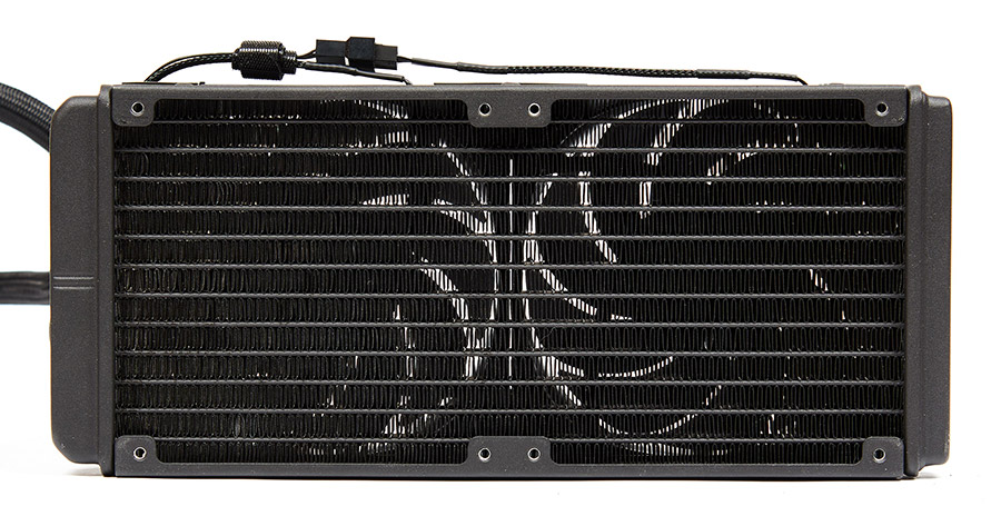 Головний радіатор виконаний з алюмінію та розрахований на два 120-мм вентилятори. Його розміри складають 270 на 120 мм, а товщина — 25 мм, тобто, це звичайна 240-ка, яка підійде до будь-якого сучасного корпусу.