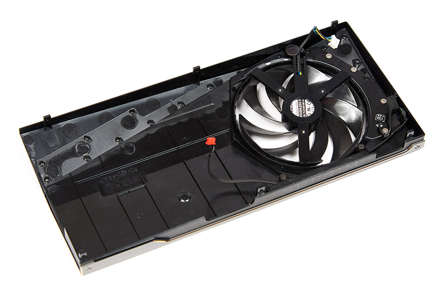 Під пластиковою кришкою кулера відеокарти знаходиться пластина-радіатор з невеличкими ребрами для охолодження силових елементів. Також вона використовується як рама для всієї конструкції.