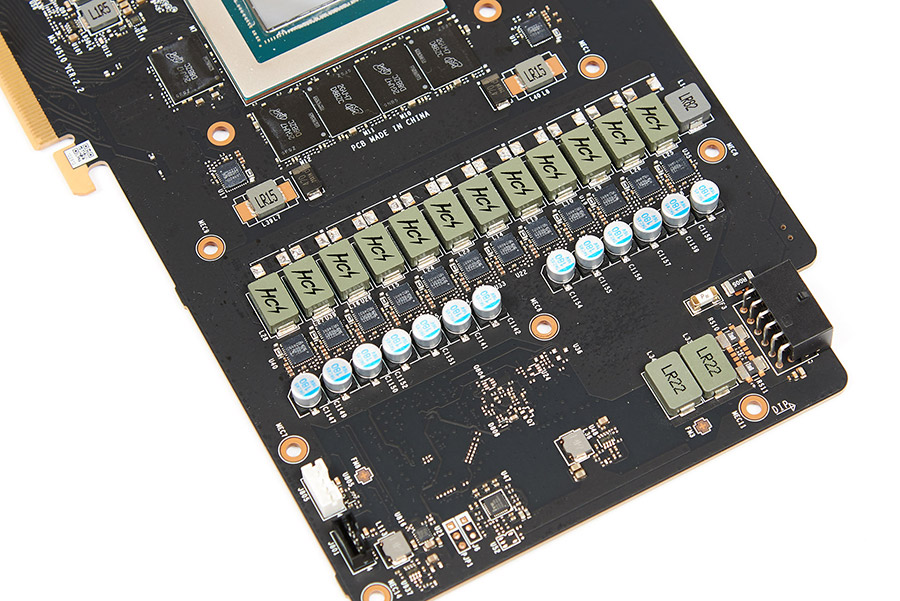 Підсистема живлення GPU налічує 26 фаз, тоді як для пам'яті — чотири. Використовуються елементи MPS MP86957, розраховані на струм 70 А. Дроселі майже не чути.