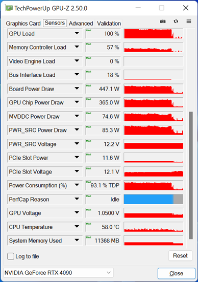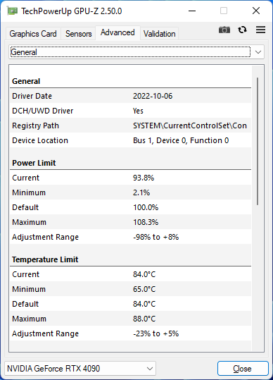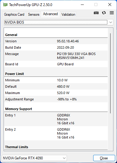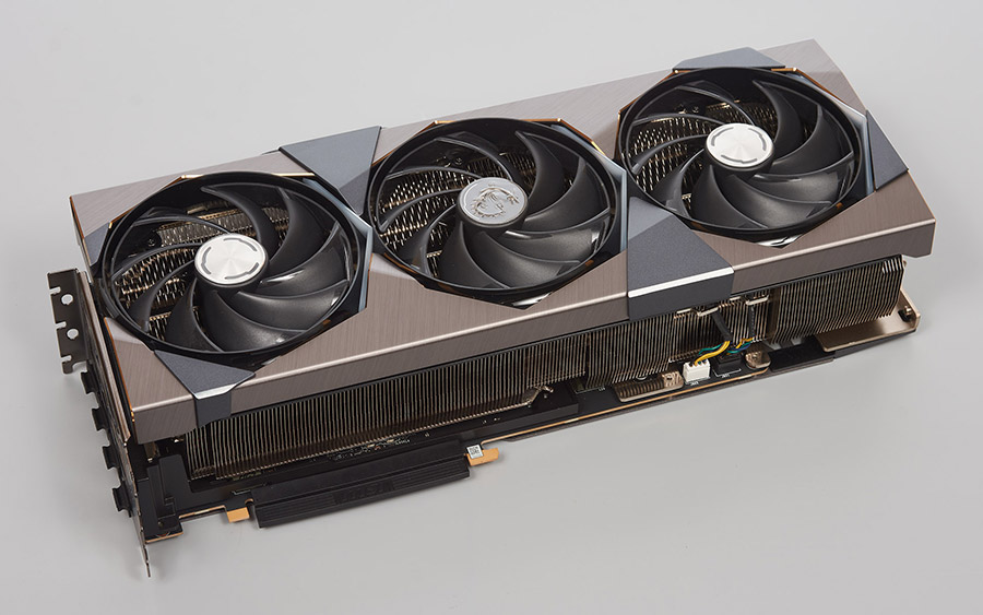 Чип працює на стандартній частоті 2235 МГц та може прискорюватися до 2625 МГц, що більше, ніж у розглянутій раніше ASUS TUF GeForce RTX 4090. А ось ліміт потужності у Suprim обмежений 520 Вт. Пам’ять функціонує зі стандартною пропускною спроможністю 21 Гбіт/с.
