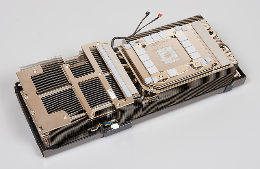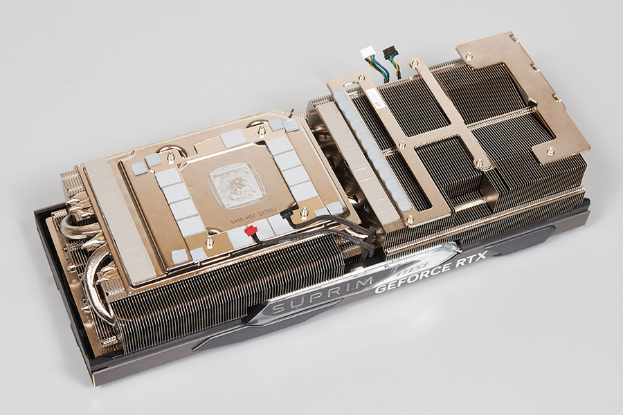 Радіатор виконаний з випарною камерою та двох секцій тонких алюмінієвих пластин, які пронизують дві товстих та шість тонких теплових трубок. Конструкція дуже масивна та важка, й нагадує радіатори старих Suprim, але цей товще, бо карта займає майже чотири слоти.
