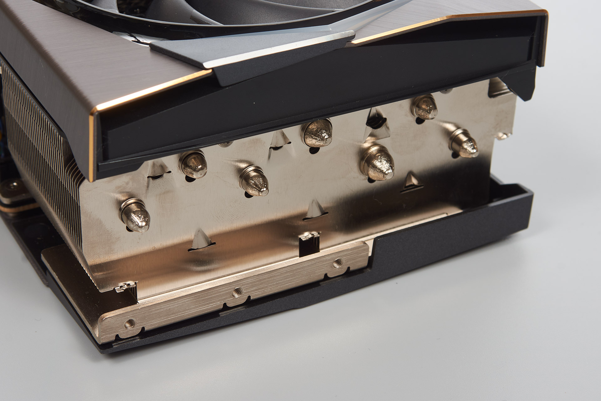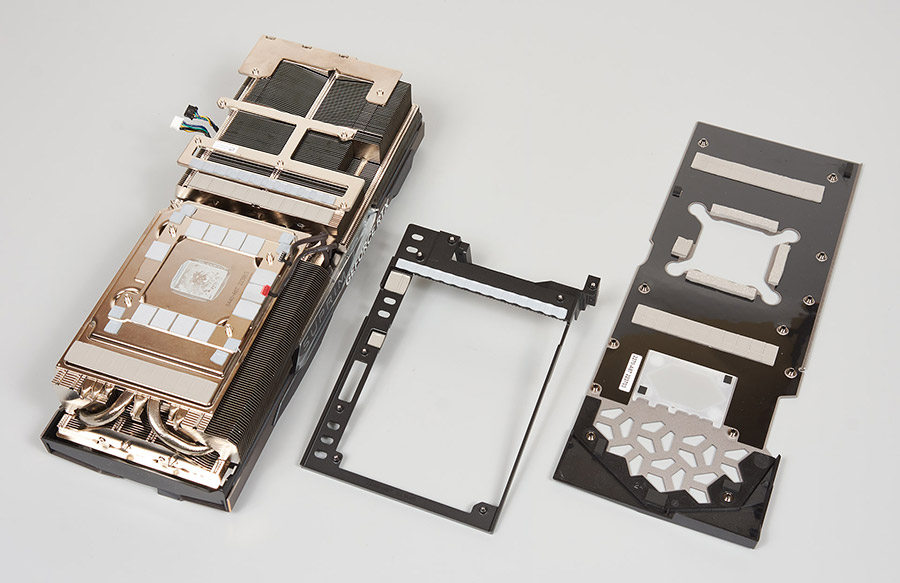 Радіатор виконаний з випарною камерою та двох секцій тонких алюмінієвих пластин, які пронизують дві товстих та шість тонких теплових трубок. Конструкція дуже масивна та важка, й нагадує радіатори старих Suprim, але цей товще, бо карта займає майже чотири слоти.
