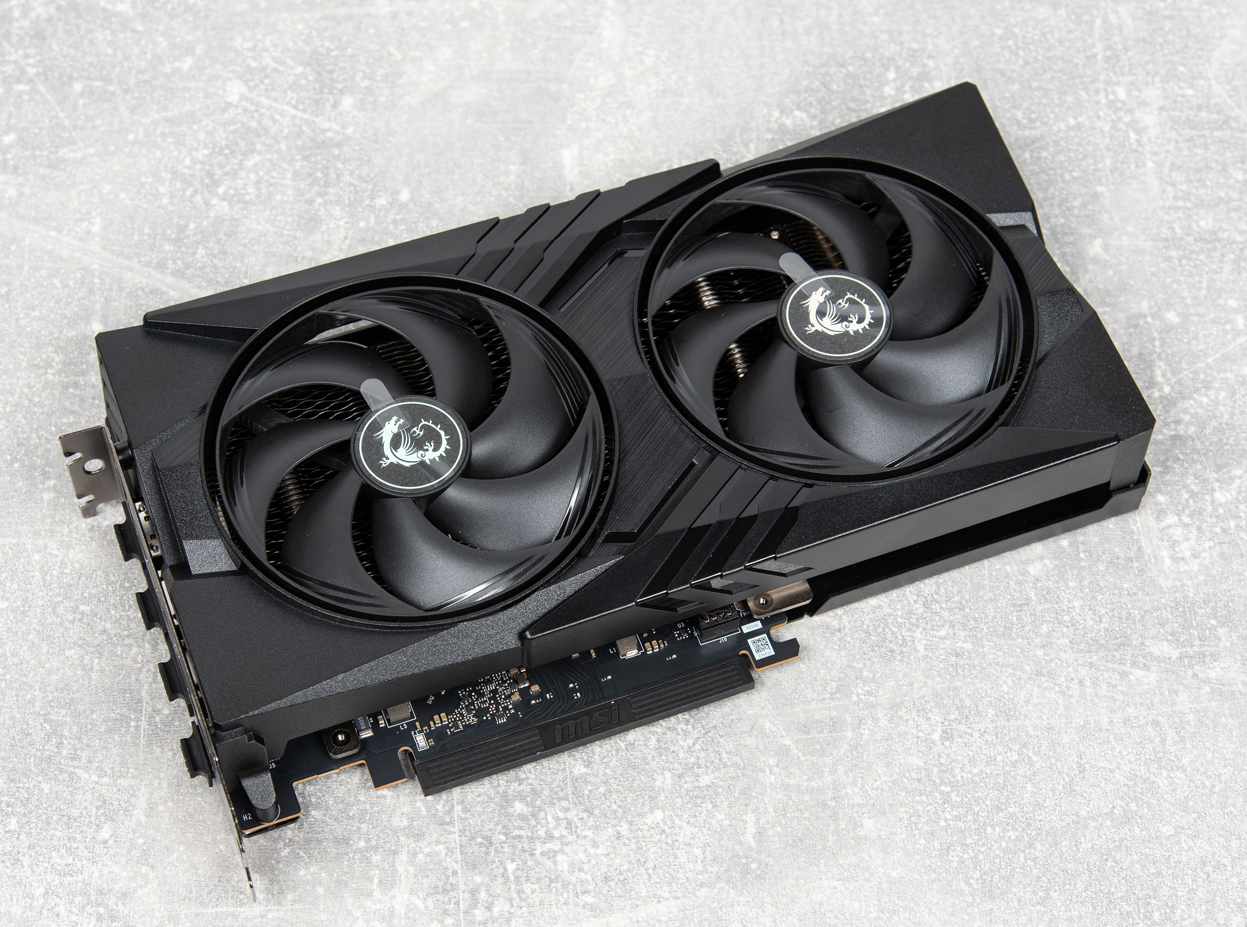 Це найменша з представлених карт, її розміри складають 248×135×41 мм при вазі лише 0,65 кг, що дозволяє використовувати її без підпірки та в маленьких корпусах. Графічний адаптер має 3840 потокових процесорів та працює на частоті 2280 МГц з автоматичним прискоренням до 2625 МГц. Обсяг встановленої пам’яті GDDR7 дорівнює лише 8 Гбайт, шина — 128 біт, а швидкодія сягає 28000 МТ/с. З розгорнутими характеристиками відеокарти можна познайомитися в минулому матеріалі.