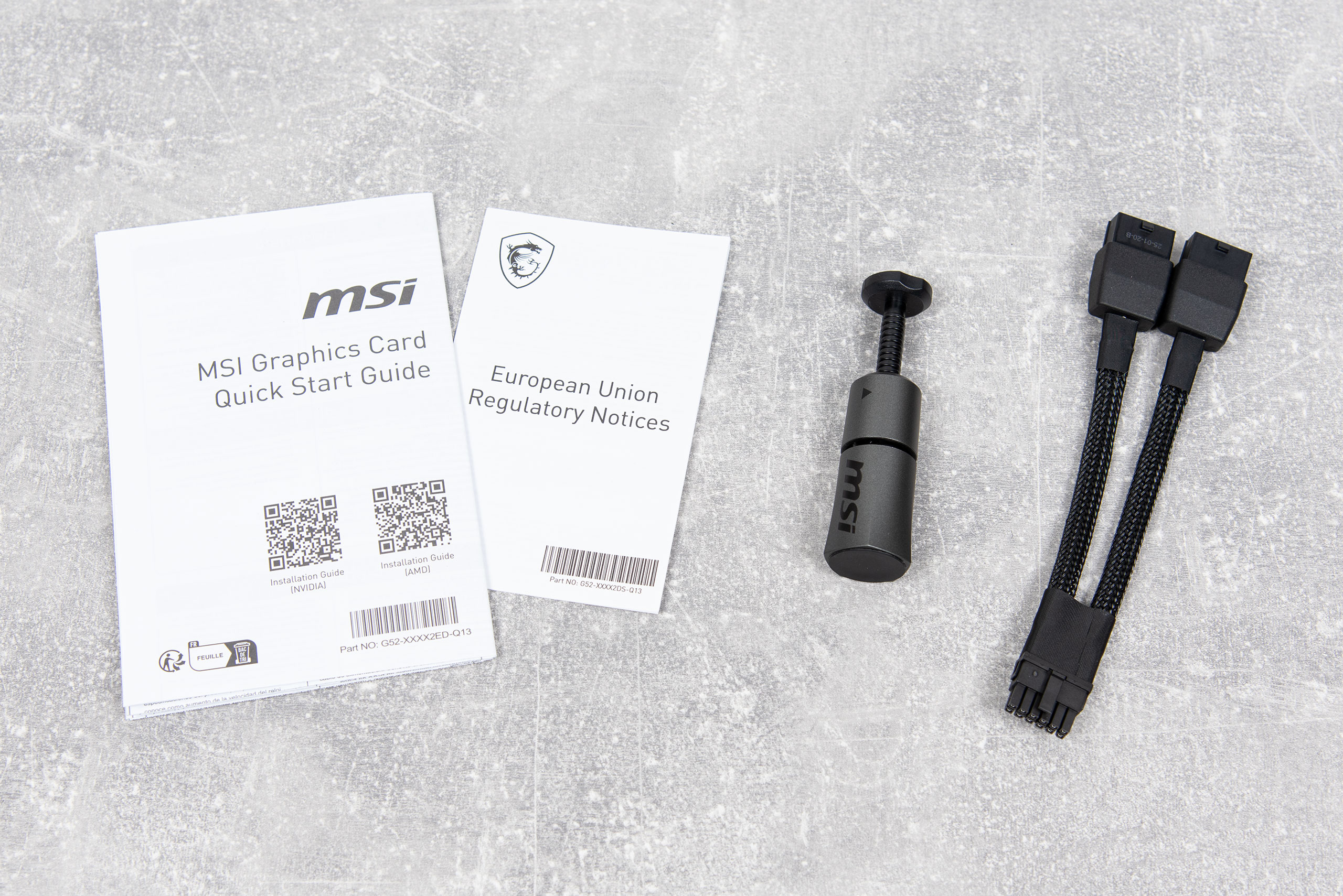 В комплекті постачання присутні документація, стійка нового типу та перехідник живлення з двох звичайних 8‑контактних роз’ємів на 12VHPWR.