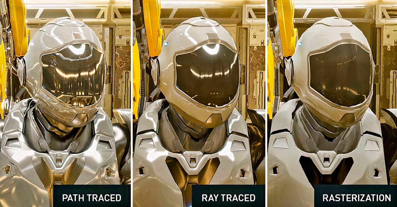 Зображення з трасуванням шляху демонструє більший рівень реалізму, краще враховуючи вплив непрямого та відбитого світла. Особливо це помітно в сценах зі складним освітленням і за великої кількості поверхонь, що відбивають світло. Як приклад можна знову згадати Doom: The Dark Ages. На релізі гра підтримувала трасування променів, а в червні отримала оновлення з трасуванням шляху і DLSS 4. Візуальні зміни показані в спеціальному трейлері.