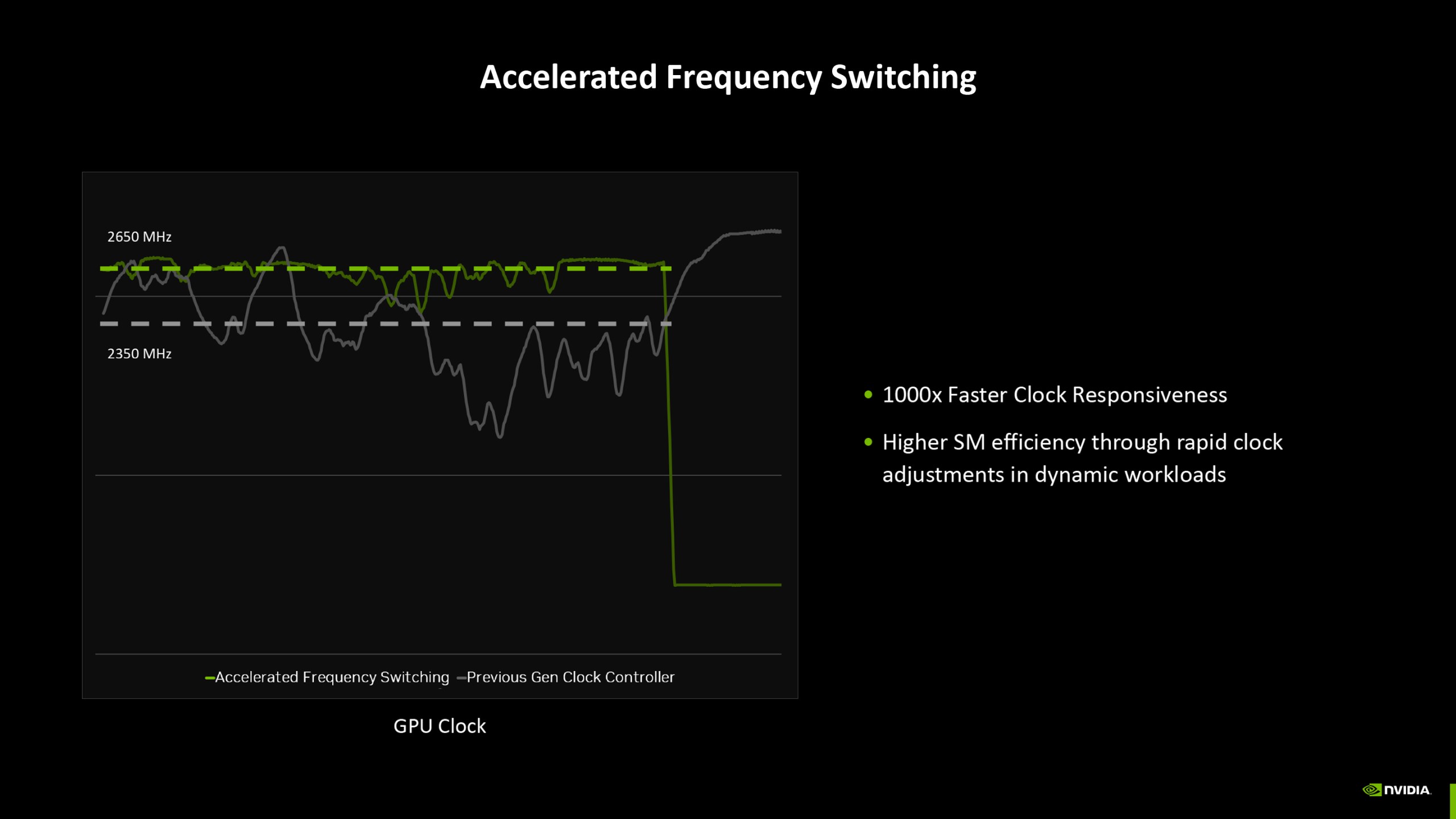 Уперше за 10 років було змінено механізми управління частотами в режимі Boost. Чип краще адаптується до динамічних навантажень і перемикає частоти в 1000 разів швидше, ніж старі графічні процесори. Це дає змогу отримати максимальну віддачу від графічного процесора в межах заданого ліміту потужності.