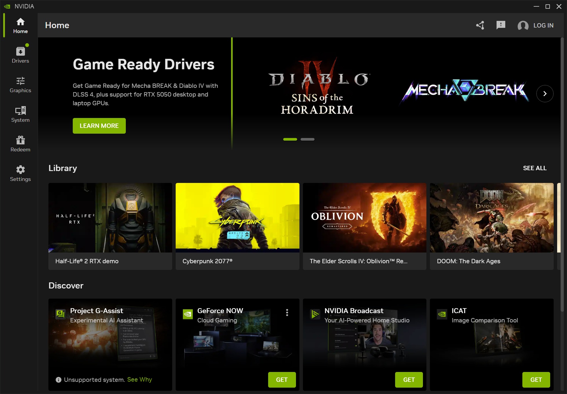 Змінився основний застосунок для управління програмними налаштуваннями відеокарт NVIDIA. Тепер разом із драйвером GeForce кожен користувач отримує NVIDIA App, де зосереджені всі функції для управління відеокартою та ігровими налаштуваннями. Звідси ви вмикаєте всі режими оверлею NVIDIA — запис відео, моніторинг продуктивності та інше. У вкладці Graphics можна активувати оптимальні режими для різних ігор, які забезпечать найкращий баланс між графікою і продуктивністю на вашій системі.