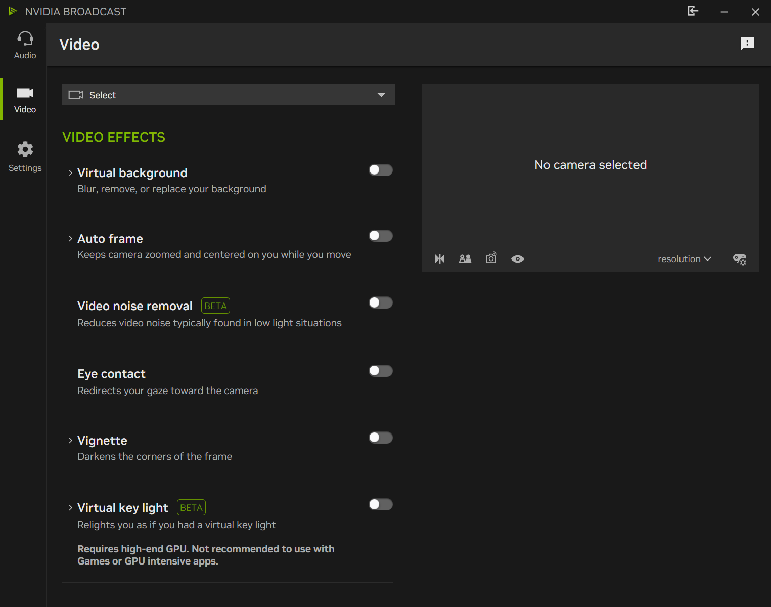 Разом з NVIDIA App можна встановити кілька додаткових програмних застосунків, серед яких окремо варто виділити NVIDIA Broadcast. Це набір інструментів для стримера, включно з ШІ-технологіями для поліпшення якості звуку від мікрофона та вебкамери.