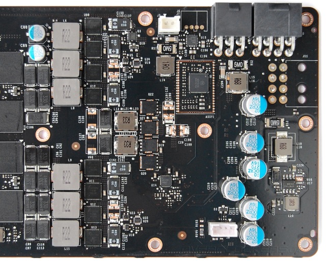 Особенностью конструкции последних GeForce GTX является наличие дополнительного радиатора над узлом питания в боковой части платы.