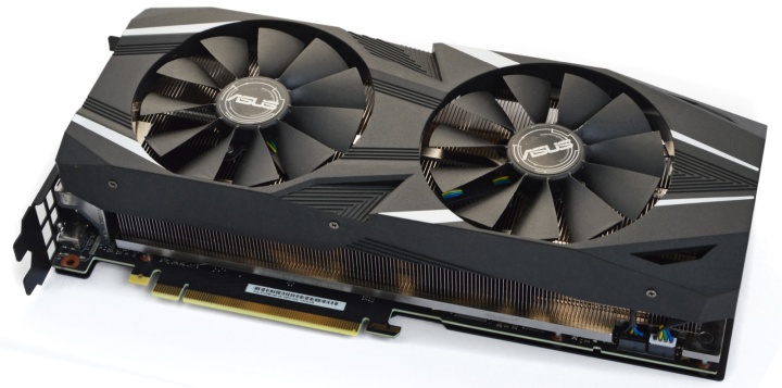 Основная видеокарта ASUS DUAL-RTX2080-O8G, которая по частотам полностью идентична версии Founders Edition. Это тоже слегка ускоренная по Boost видеокарта, и об этом надо помнить, сравнивая результаты с решениями AMD. Самые простые версии GeForce RTX 2080 могут быть на пару процентов слабее. Ядро TU104 оперирует 2944 потоковыми процессорами при 64 текстурных блоках.