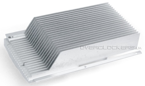 Радиатор довольно большой, как для такой карты и холодного GPU Redwood. Цельная алюминиевая конструкция обходится без использования тепловых трубок.