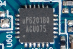 Двухфазная система питания ядра реализована на контролере uP6201BQ.
