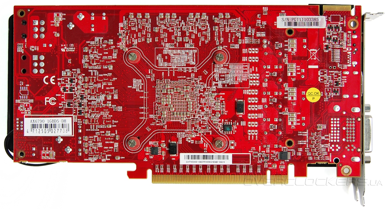 За основу взят дизайн PCB Radeon HD 6870, хотя в исполнении PowerColor плата немного короче. Сбоку есть посадочные места под два 6-контактных разъема питания, распаян же только один. Интересно, что Radeon HD 6870 при таком же уровне энергопотребления требует два разъема PCI-E Power 6-pin.