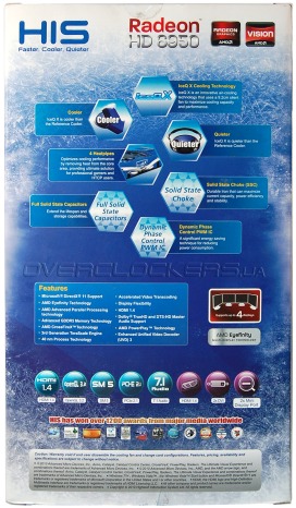 Дизайн платы кардинально отличается от референсного. Обычный Radeon HD 6950 является полной копией Radeon HD 6970, а в данном случае плата копирует младший Radeon HD 6870. Несмотря на свой статус самой быстрой версии Radeon HD 6950 в стане HIS данная модель в некоторой степени является упрощенным и удешевленным вариантом. Перед нами фактически плата от HIS 6850 IceQ X Turbo с дополнительной одной фазой системы питания GPU.