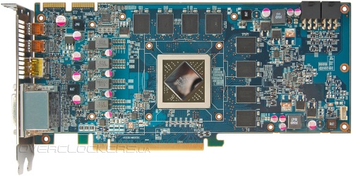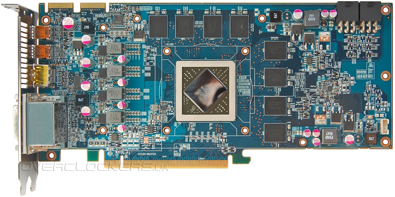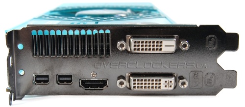 Набор внешних коммуникаций довольно богатый: два DVI, два mini DisplayPort, один HDMI. Но такая комбинация разъемов стандартна для Radeon HD 6950/6970.