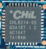 Вместо шестифазного преобразователя питания GPU в данном случае реализован четырехфазный на знакомых нам уже микросхемах 59901M. Управляющие функции возложены на ШИМ-контроллер CHiL CHL8214-05. Узел питания памяти построен на контроллере с маркировкой AM113, который вполне может оказаться перемаркированым uP6122AF.