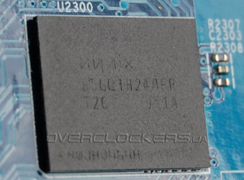 Объем памяти в один гигабайт набран восемью микросхемами Hynix H5GQ1H24AFR T2C.