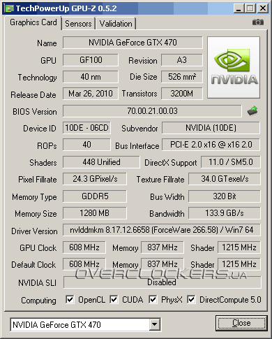 Последнего участника нашего сравнения можно назвать старожилом, ведь базируется он на первом графическом процессоре архитектуры Fermi, а видеокарты серии GTX 470 были представлены еще весной прошлого года.