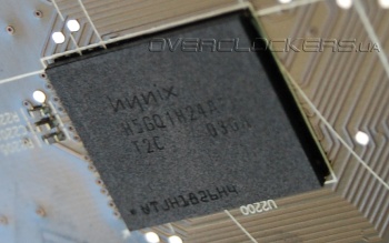 Общий объем памяти в один гигабайт набран восемью микросхемами Hynix H5GQ1H24AFR T2C.