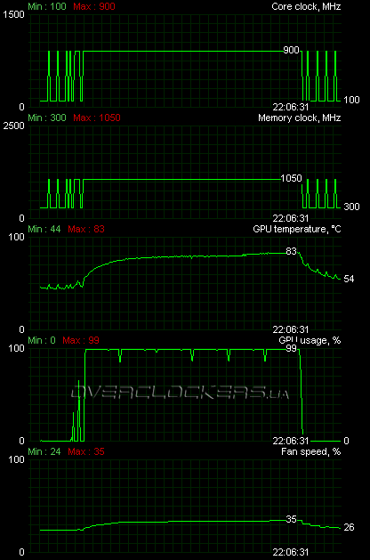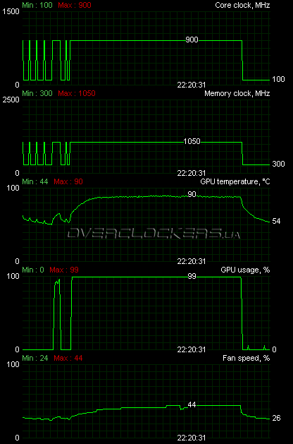 А вот память разочаровала, ведь ее стабильным максимумом оказалась частота 4520 МГц. На таких частотах сохранялась стабильность в игровых приложениях и в FurMark при максимальных оборотах вентилятора.