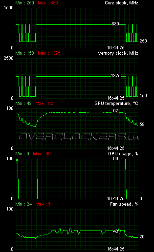 Стресс-тест Furmark прогрел карту до 92 °С, но уровень шума был уже очень высокий.