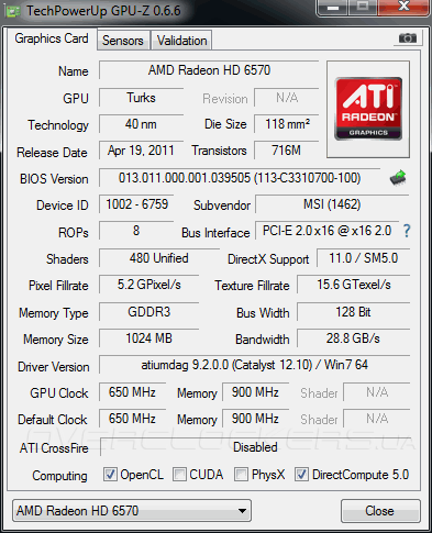 | Видеоадаптер | Radeon HD 7660D | MSI R6570-MD1GD3/LP | MSI R6770 Twin Frozr II/OC |
