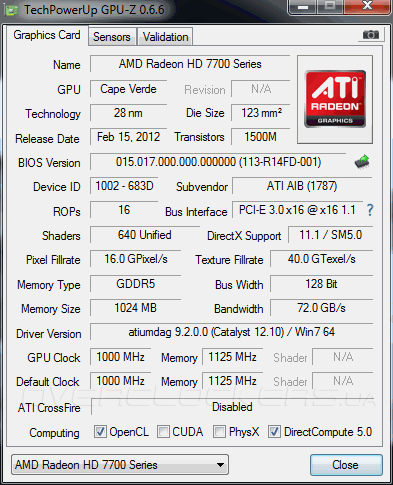 В качестве модели начального уровня использовался видеоускоритель PowerColor AX7770 1GBD5-DH, базирующийся на 28-нм чипе Radeon HD 7770. Данная модель при розничной стоимости около $115 предлагает поддержку самых современных технологий AMD и обладает неплохой экономичностью. Что касается быстродействия, то графические карты, основанные на ядре Cape Verde, позволяют наслаждаться самыми современными видеоиграми даже в разрешении1920х1080, правда, ценой снижения детализации и отключения полноэкранного сглаживания.