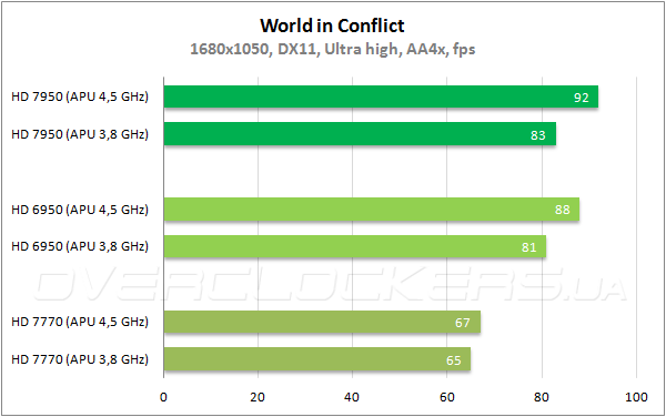 Последняя в сегодняшнем тестировании дисциплина — стратегия реального времени World in Conflict: Soviet Assault — очень благосклонно относится к запасу мощности вычислительной подсистемы.