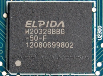 Распаяны чипы памяти Elpida W2032BBBG-50-F общим объемом в один гигабайт.
