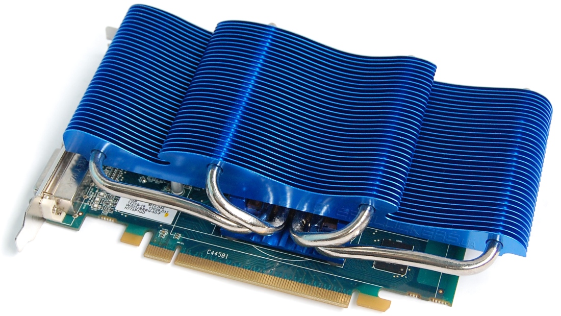 К нам в руки попала не совсем обычная версия данного Radeon. Сразу бросается в глаза надпись «Quiter 0 dB» на коробке. И это не случайно, ведь данный HIS оснащен пассивной системой охлаждения, так что никакого шума от видеоадаптера не будет.