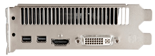 У Palit конфигурация разъемов на задней панели немного отличается от стандартного набора. Вместо mini-HDMI и двух DVI в данном случае реализованы mini-HDMI, DVI и аналоговый D-Sub.