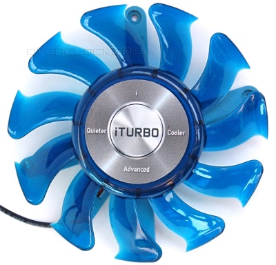 Старые модели IceQ были полностью выполнены в синих тонах, в данном случае черный кожух сочетается с синим вентилятором.