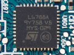 Система питания графического процессора реализована по типовой трехфазной схеме под управлением контроллера L6788A от STMicroelectronics.