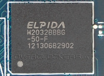 Распаяны чипы памяти Elpida W2032BBBG-50-F общим объемом в один гигабайт.