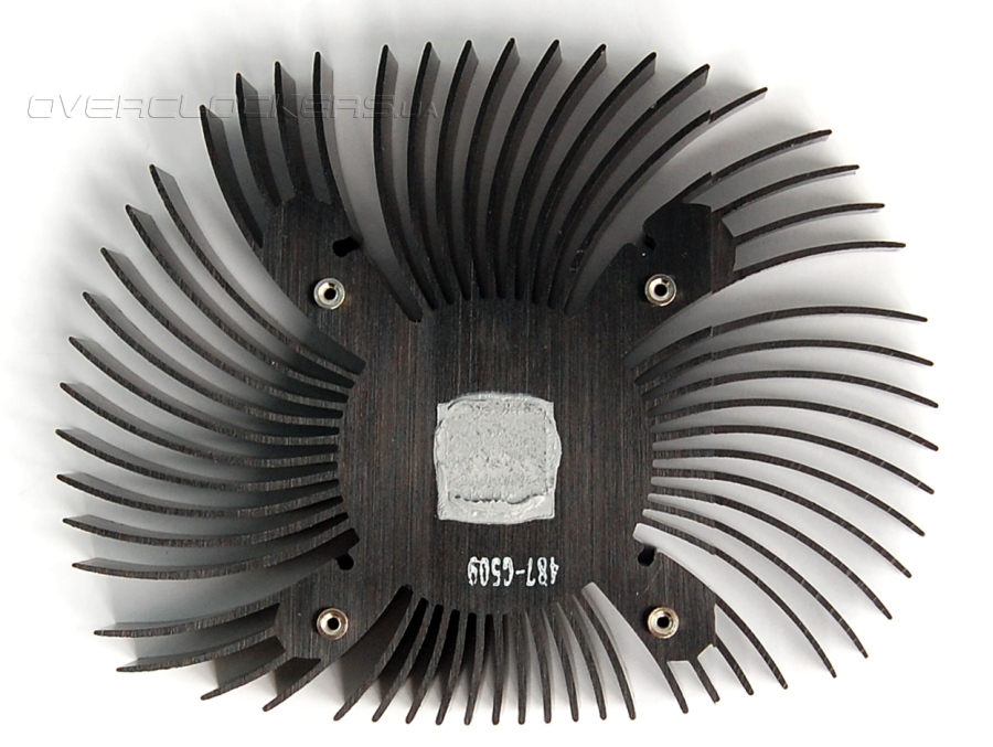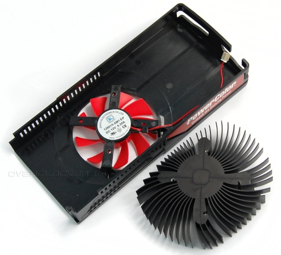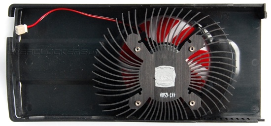 Все довольно просто. Радиатор примерно такой же, как у Gigabyte GV-R777OC-1GD, только чуть меньше в размерах. Обдувается он вентилятором 128015-SM1 EP от Junyu Electronics диаметром 80 мм (крыльчатка 75 мм).