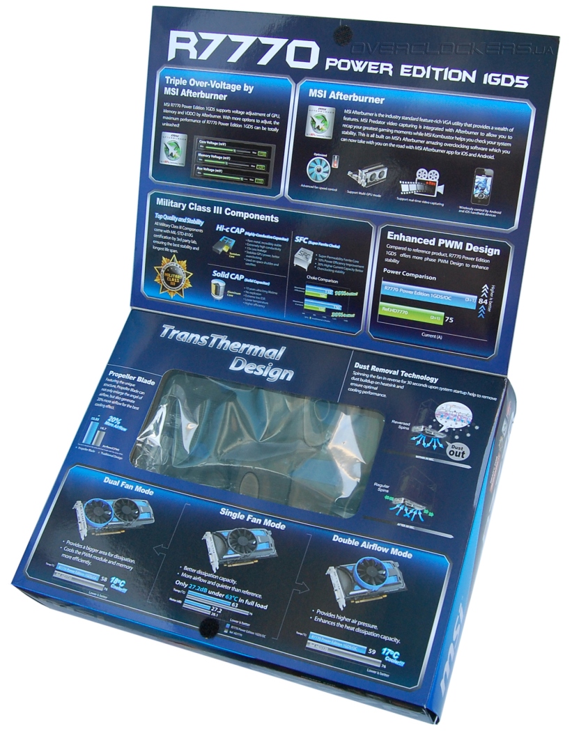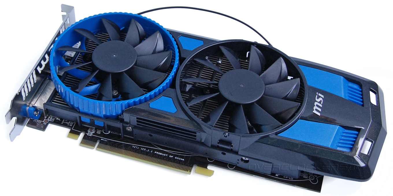 Особенностью видеокарты является изменяемый дизайн системы охлаждения с возможностью использования одного или двух вентиляторов. MSI называет это TransThermal Design. Самый простой вариант — один вентилятор по центру.