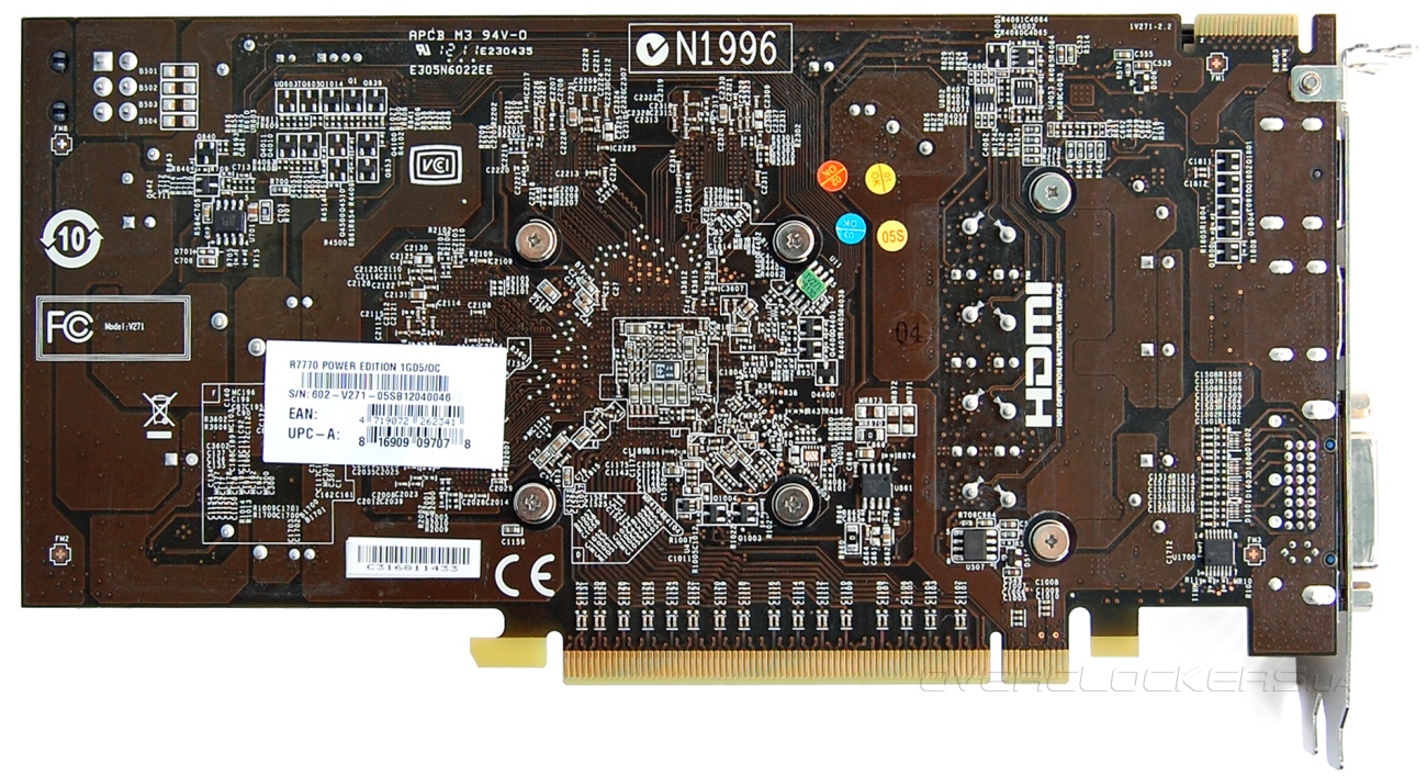 Печатная плата R7770 Power Edition 1GD5/OC выполнена по нереференсному дизайну.