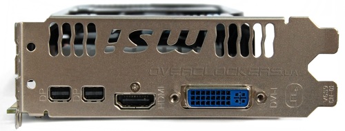 Набор разъемов на задней панели включает два mini-DisplayPort, один HDMI и DVI, что полностью соответствует коммуникационным возможностям референсных решений.
