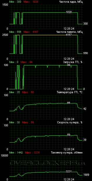 Шум видеокарты нас неприятно удивил. От холодного Cape Verde мы ожидали тишины и низких температур, но получили только низкие температуры. При игровой нагрузке вентиляторы легко раскручивались до 3000 об/мин и выше, создавая большой гул. Хотя нагрев GPU при этом действительно был небольшим. 12-минутный тест Crysis: Warhead не сумел прогреть ядро свыше 66 °C при 24,5 °C в помещении.