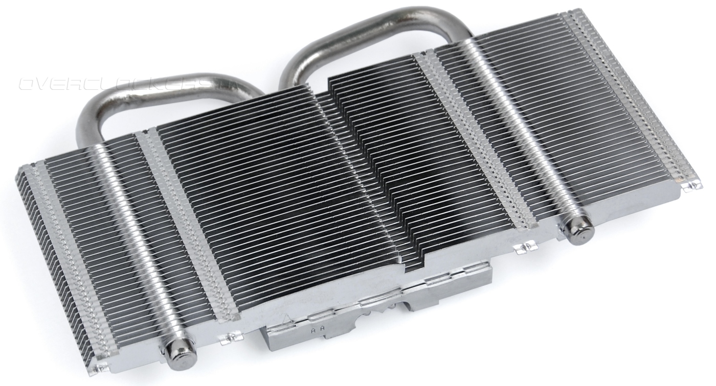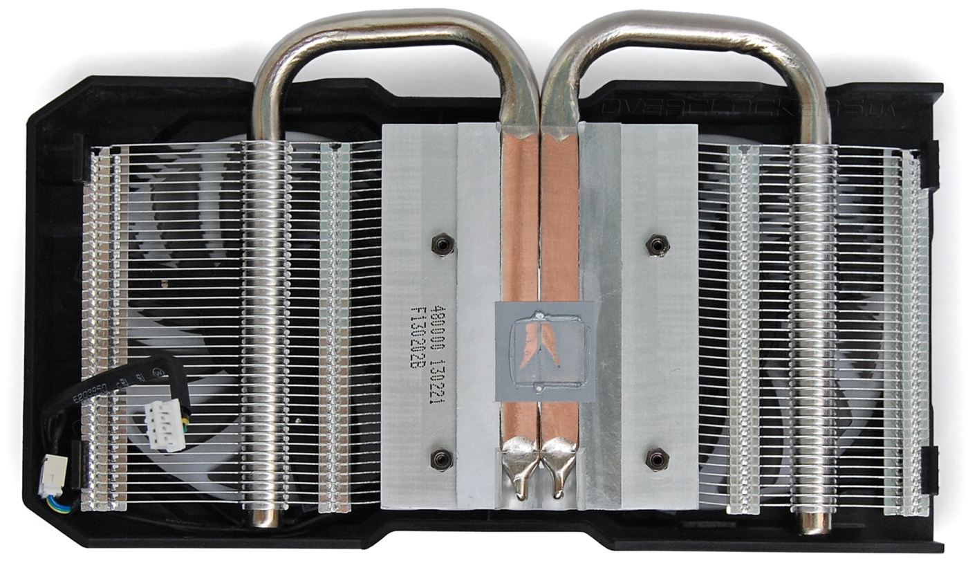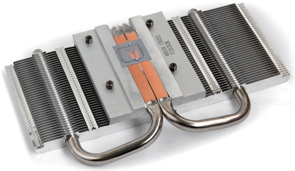 Две толстые 8-мм тепловые трубки уложены в желобки основания и плотно подогнаны друг к другу. Технология прямого контакта обеспечивает наиболее эффективный отвод тепла от поверхности графического кристалла.