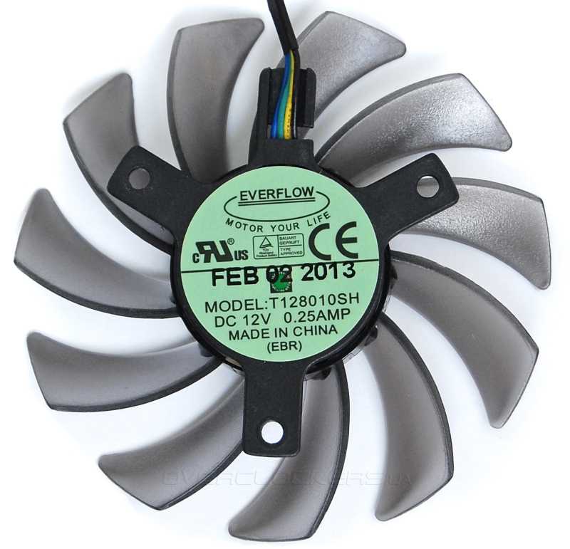 Обдувается радиатор двумя вентиляторами Everflow T128010SH диаметром 80 мм (реальный размер крыльчатки 75 мм).