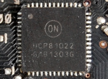 Графический процессор запитан от пятифазного преобразователя под управлением контроллера NCP81022.
