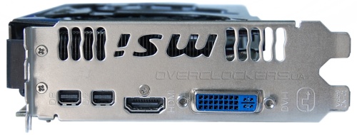 На заднюю панель вынесены два разъема mini-DisplayPort, один HDMI и DVI.