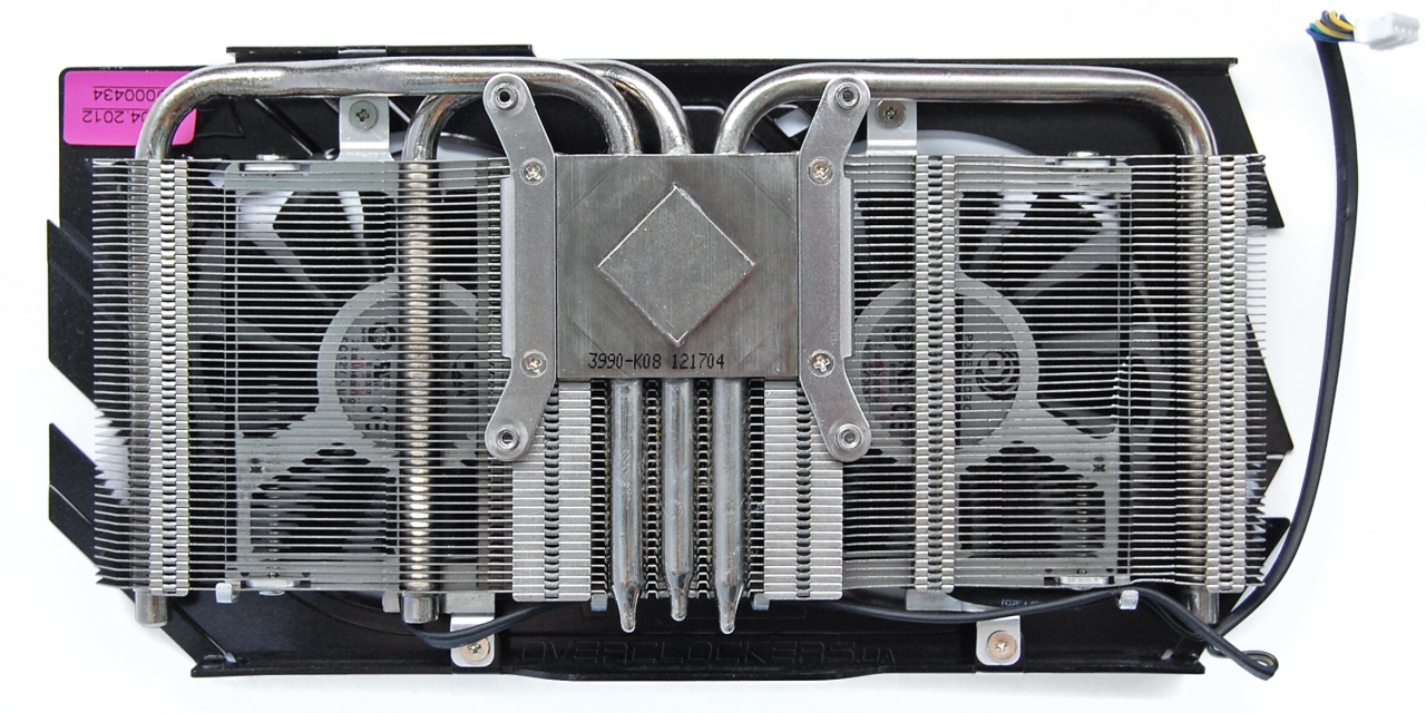 Система охлаждения выполнена по стандартному дизайну Twin Frozr, но радиатор меньше чем у MSI R7870 Hawk или R7870 Twin Frozr 2GD5/OC. Стало меньше и тепловых трубок — их три вместо пяти. Но Radeon HD 7850 намного экономичнее и холоднее старших товарищей, так что такие упрощения не должны быть критичными.