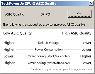 Утилита GPU-Z определила параметр ASIC Quality данного экземпляра в 87,7%.