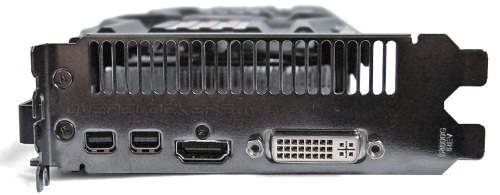 На заднюю панель вынесено два разъема DisplayPort, один HDMI и DVI.
