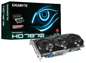 С рекомендованных 1000/4800 МГц рабочие частоты Gigabyte подняты до 1100/4800 МГц. Частота ядра в 1,1 ГГц для серийной видеокарты впечатляет. Еще недавно это показалось бы фантастикой. Однако, как помним, реальные возможности Radeon HD 7870 по разгону еще больше. Жаль только, что память обошлась без заводского разгона. А ее частота при 256-битной шине играет важную роль.
