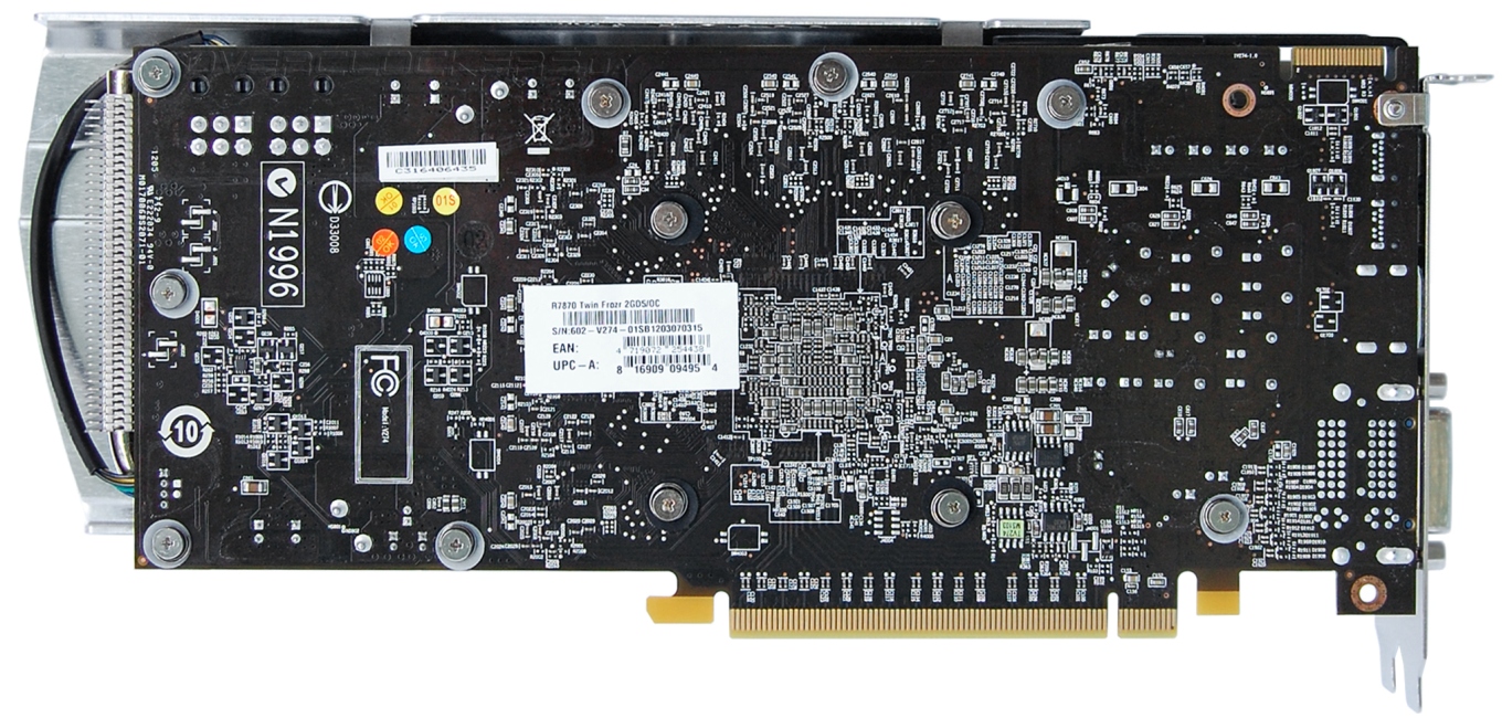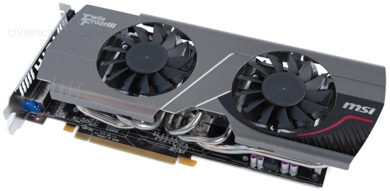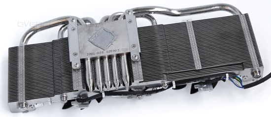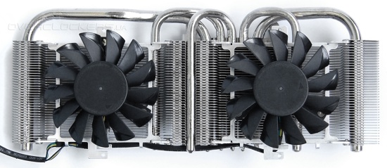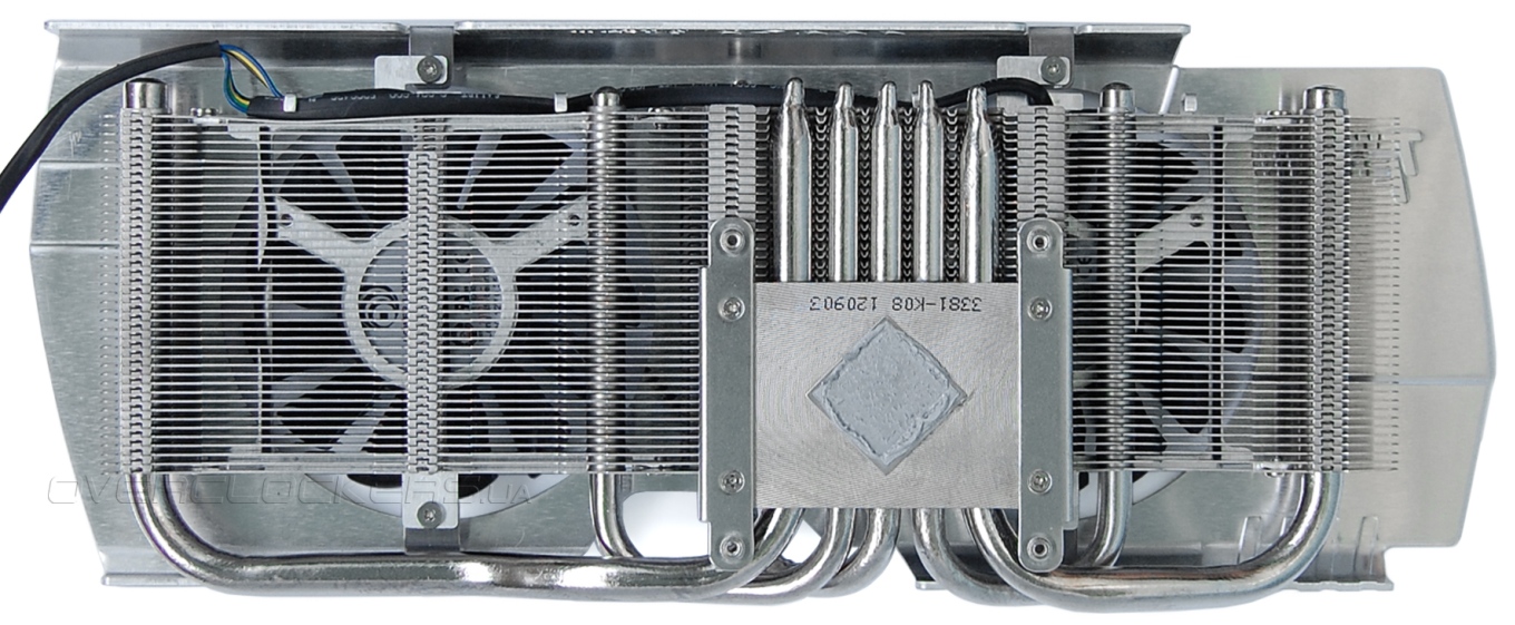 Система охлаждения Twin Frozr III идентична той, что устанавливается на Radeon HD 7950. Пять тепловых трубок и радиатор из 41 пластины, плотно расположенных друг к другу. Только основание стало меньше.